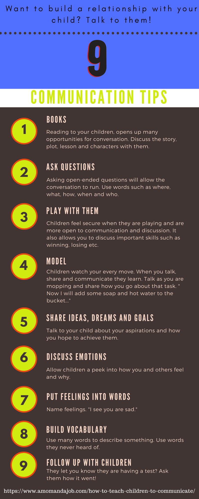 Communication builds relationships! Yup, by simply talking to your child you are building your relationship with him/her.