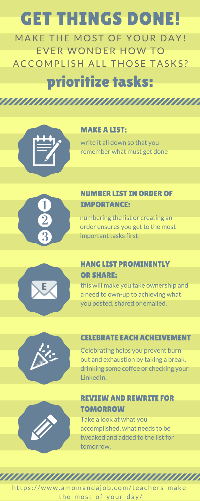 - At the end of the day review reevaluate and rewrite the list for tomorrow.